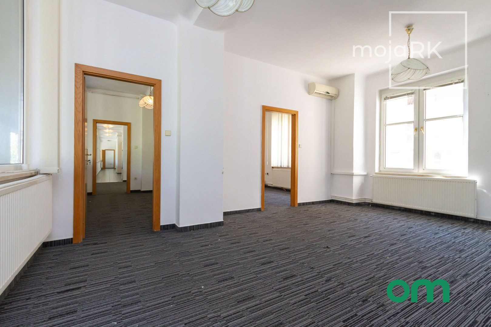 Priestory s celkovou výmerou 151,18 m2 sa nachádzajú na 1. poschodí ( na 1.posch. sa nachádzajú iba uvedené priestory ) s výťahom, pozostávajú zo 7 kancelárií / miestností, z toho dve kancelárie sú priechodné, terasy + 20 m2, 2 WC s umývadlom, 2 kúpeľní so sprchovacím kútom, kuchynky s kuchynskou linkou, ktorá je plne vybavená. Miestnosti sú orientované do tichého dvora a do parku. Terasa je orietovaná do vnútrobloku - dvora.
