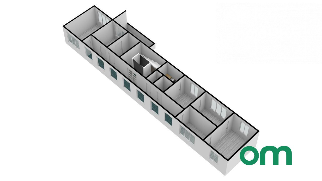 Priestor č.1 - 86 m2: 4 kancelárie/miestnosti z toho je jedna priechodná, kuchynka, kúpeľňa so sprchovacím kútom a toaletou, samostatné vykurovanie plynovým kotlom.