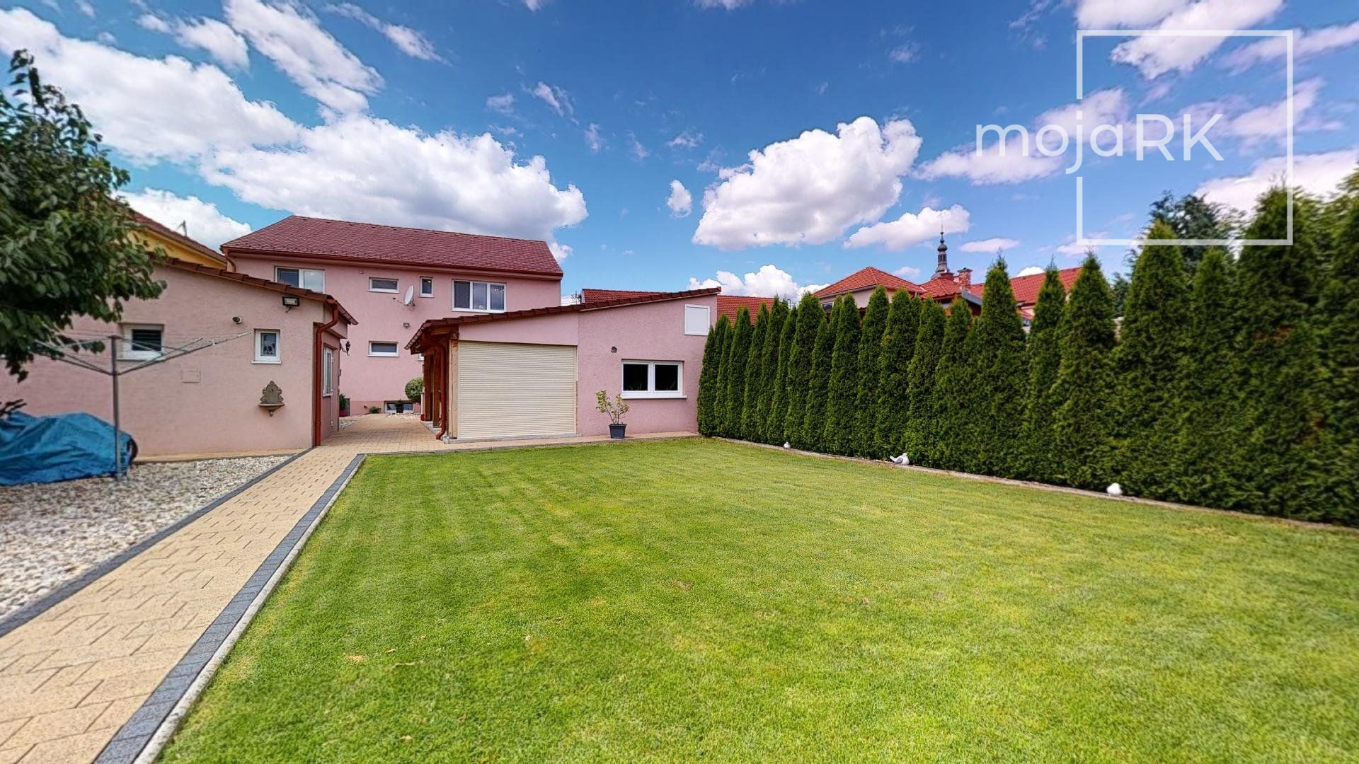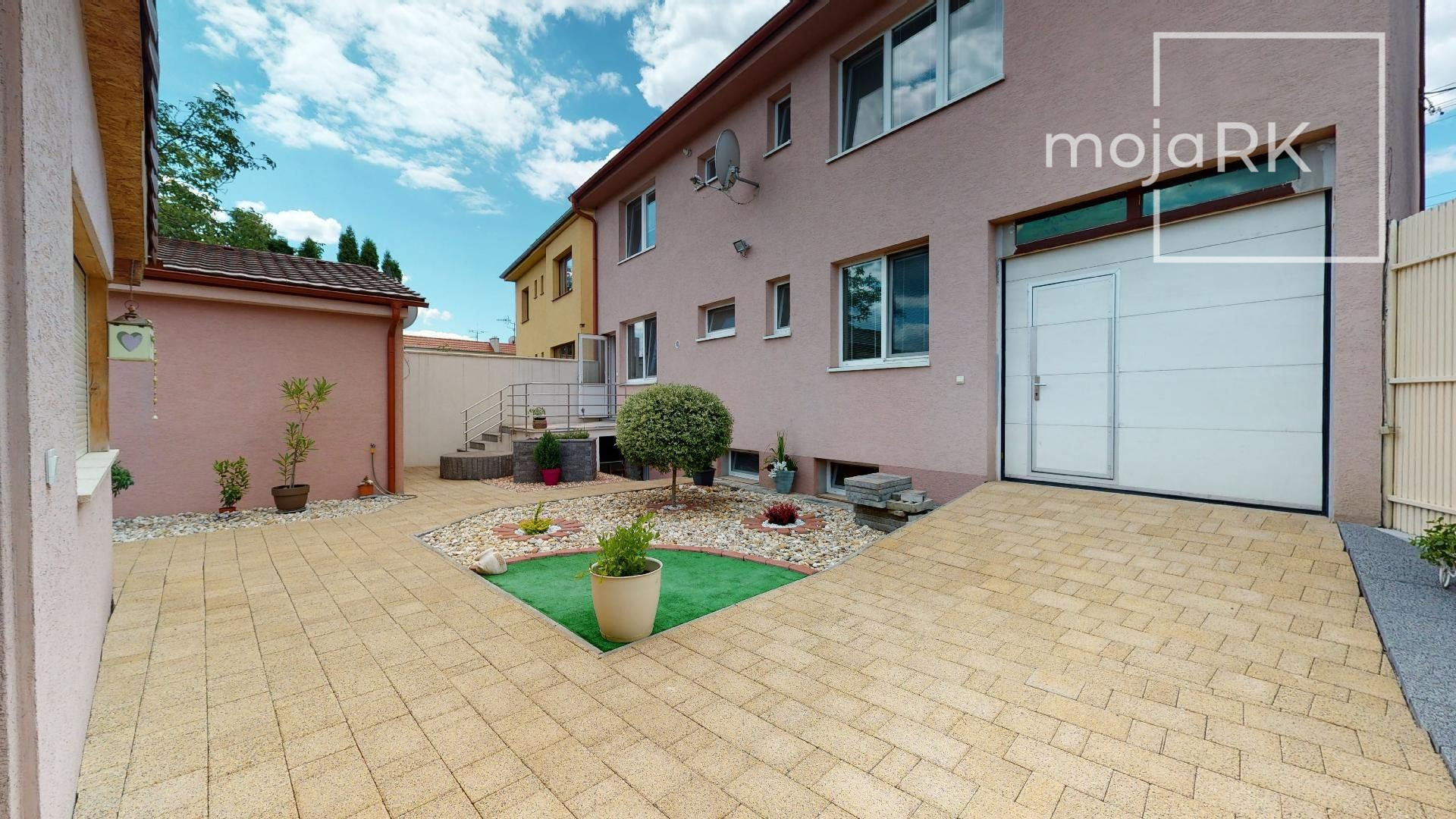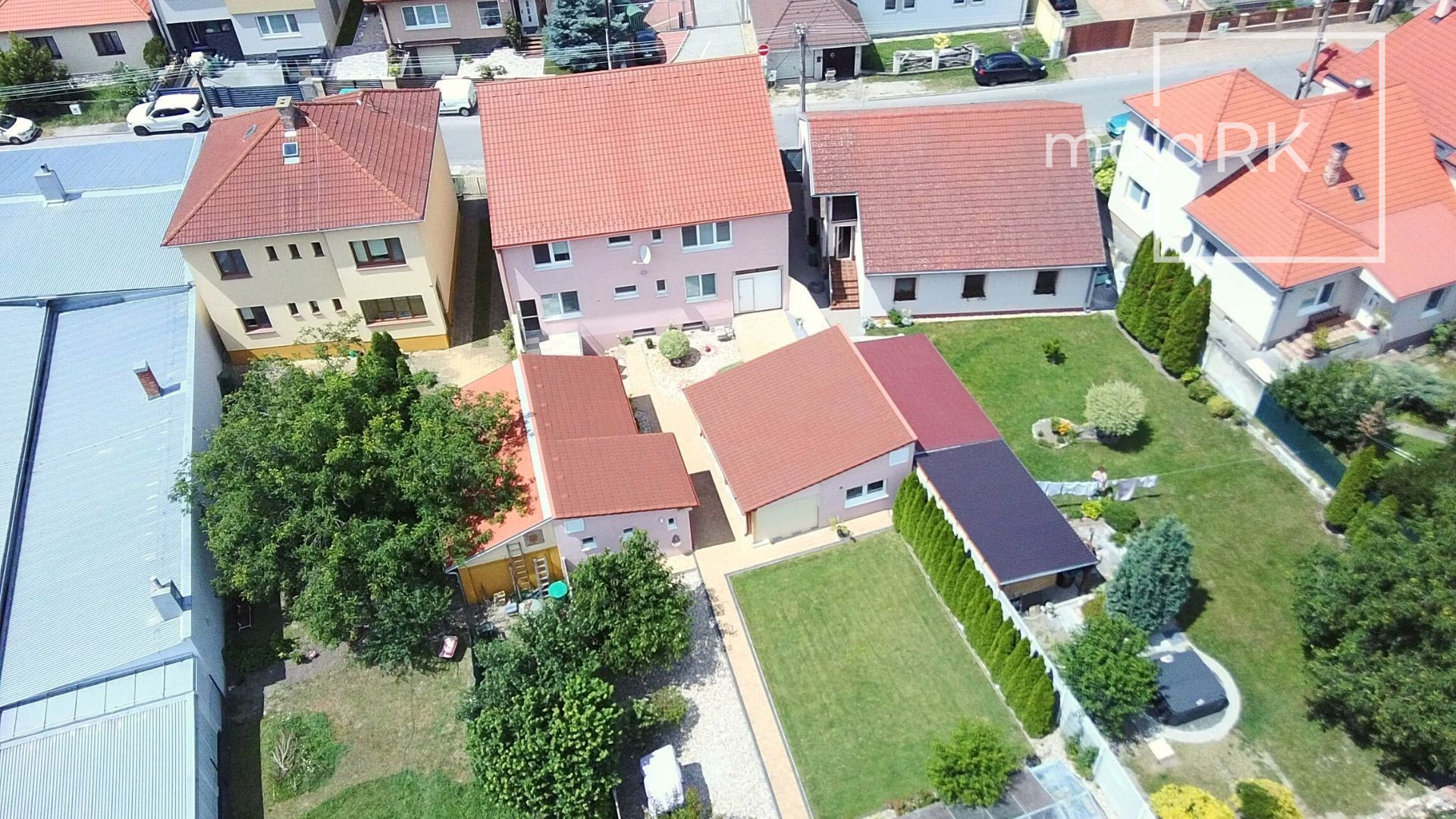 Súčasťou domu je garáž s elektronickou bránou pre dve autá, na pozemku sa nachádza ďaľšia samostatne stojaca garáž pre 1 auto + 2 parkovacie miesta na pozemku pred domom.