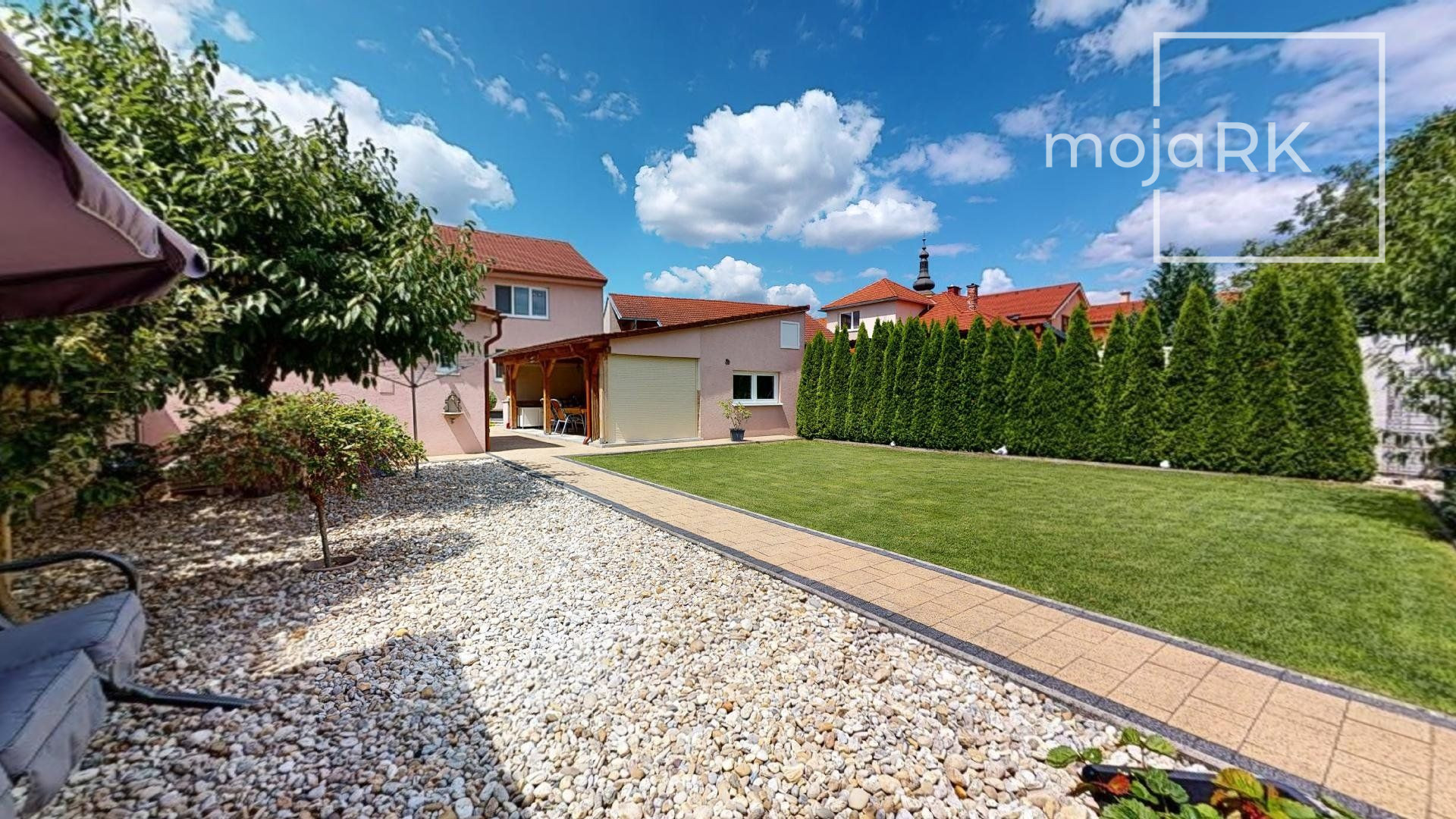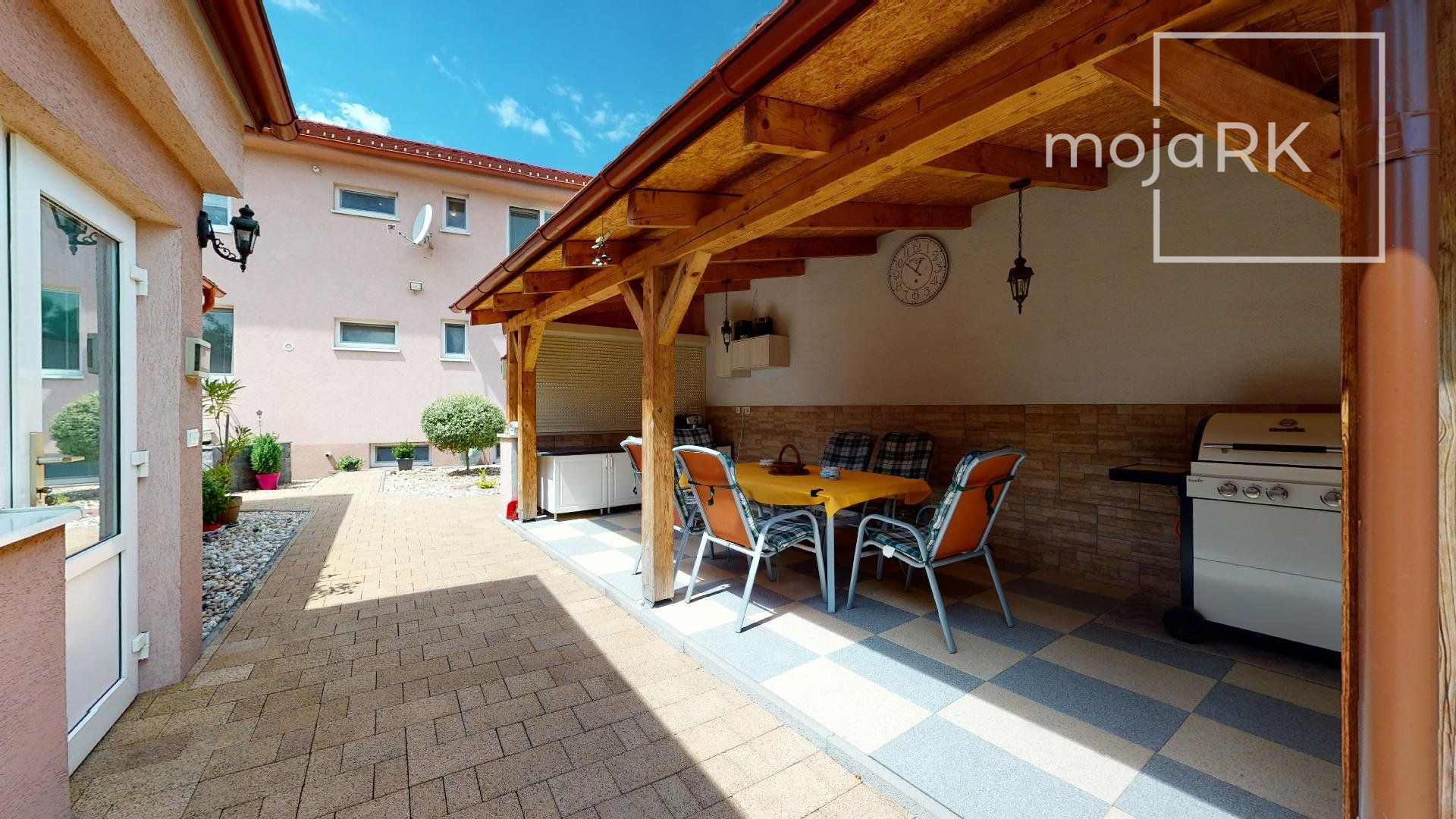 Nádherným benefitom tejto nehnuteľnosti je krásna udržiavaná záhrada s okrasnými drevinami, ktorá ponúka absolútne súkromie, priestor na príjemný relax, posedenie či grilovanie v zastrešenom altánku s letnou kuchyňou. Nadšencov pre záhradníčenie určite poteši praktický záhradný domček na náradie, vlastná studňa, ktorá je napojená na automatický zavlažovací systém, skleník aj ovocná výsadba. Bonusom je samostatne stojaci murovaný 1 izb. domček 34 m2, ktorý je kompletne vybavený a vykurovaný.