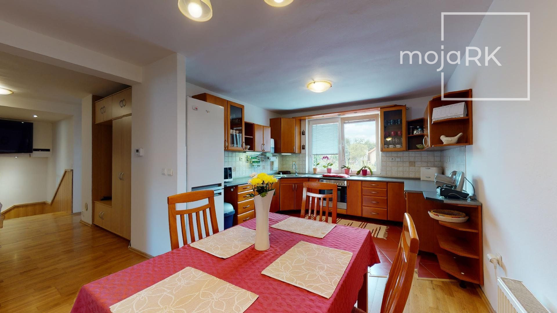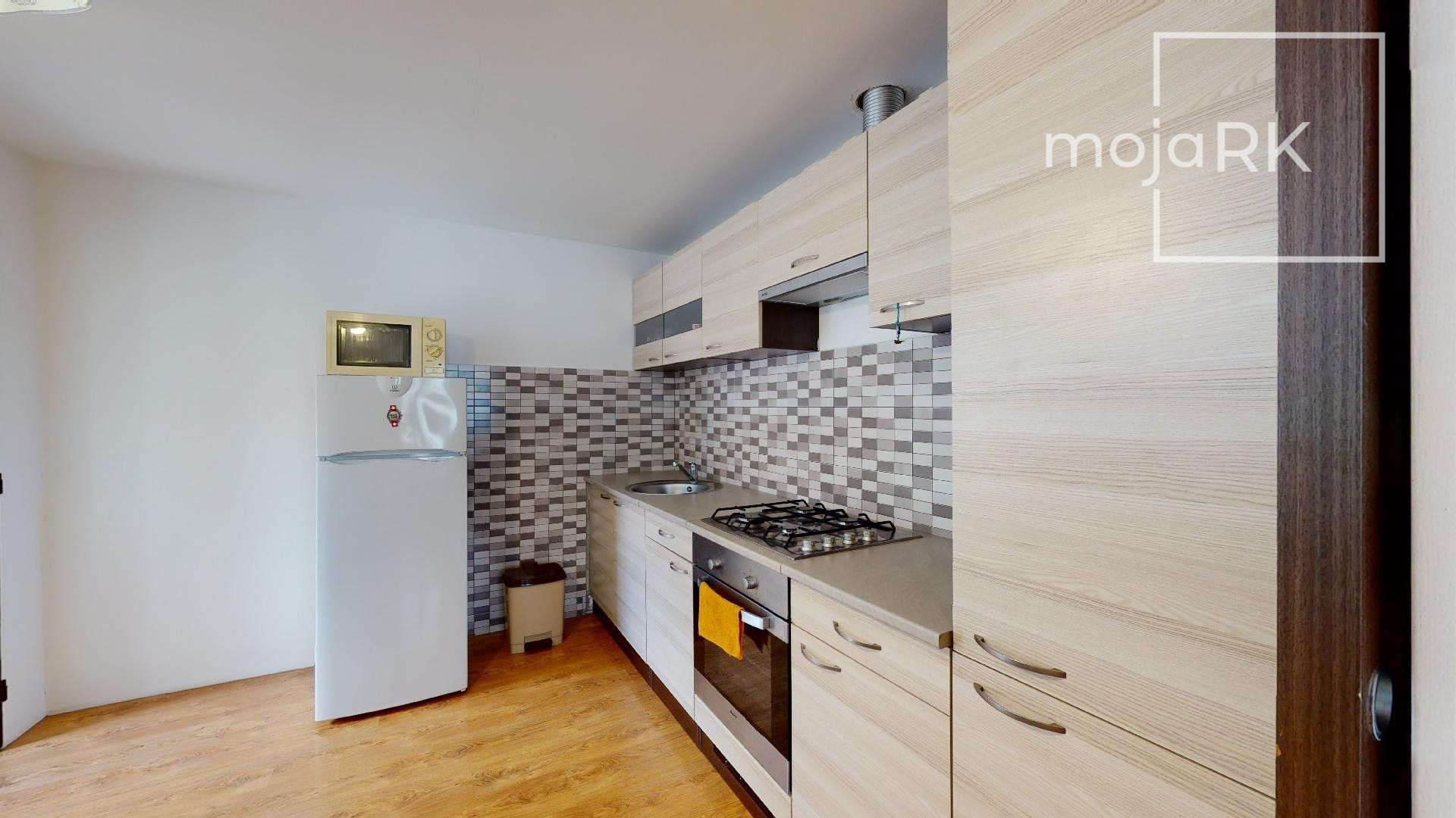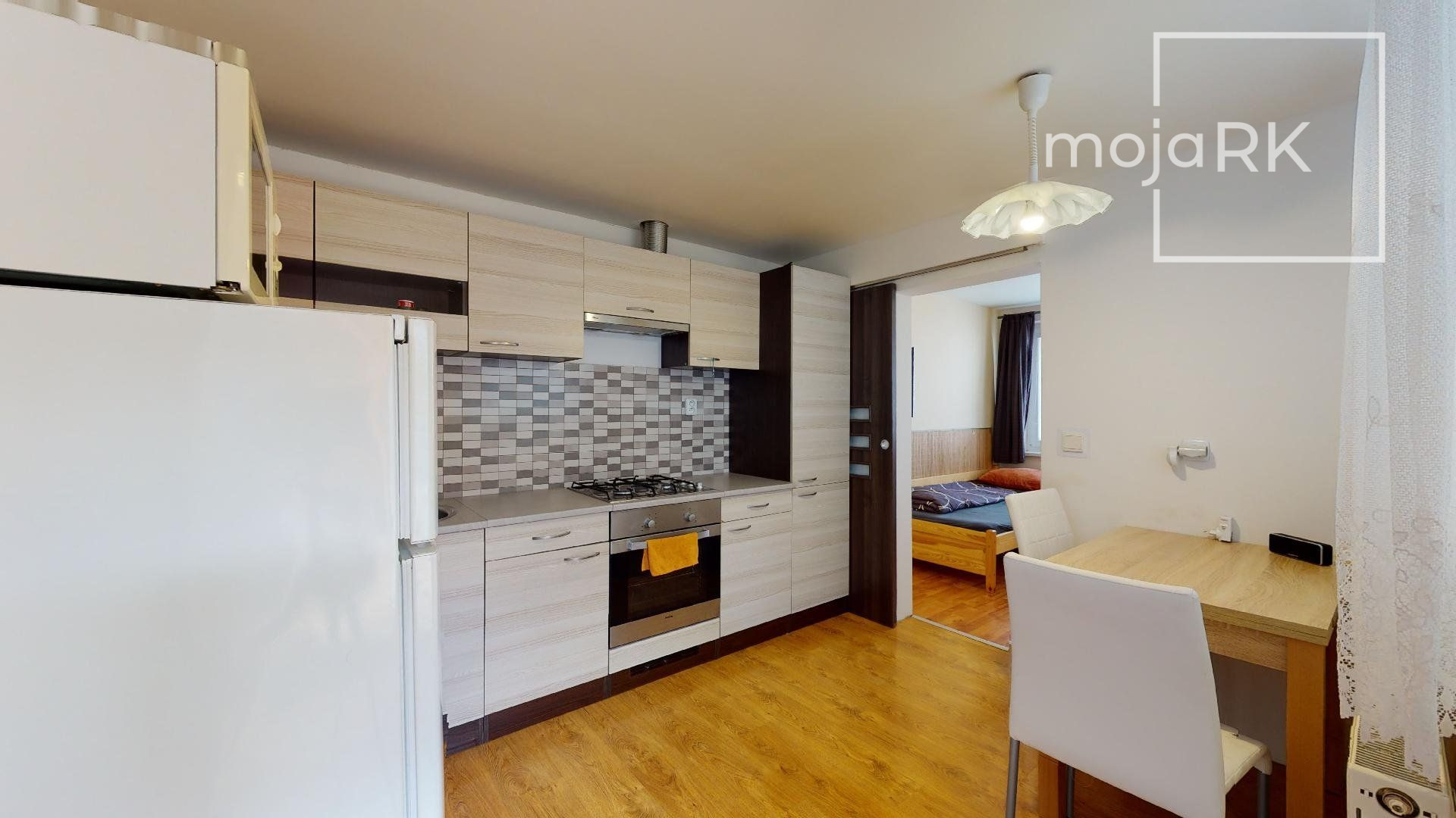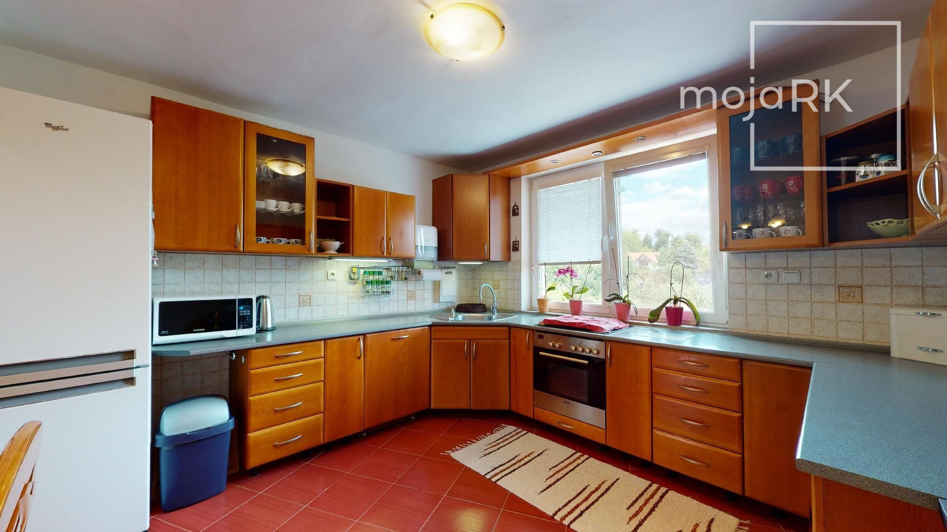 - kuchynské linky sú vybavené vstavanými spotrebičmi: plynová varná doska, elektrická rúra, digestor, umývačka riadu, samostatne stojaca chladnička s mraziacim boxom