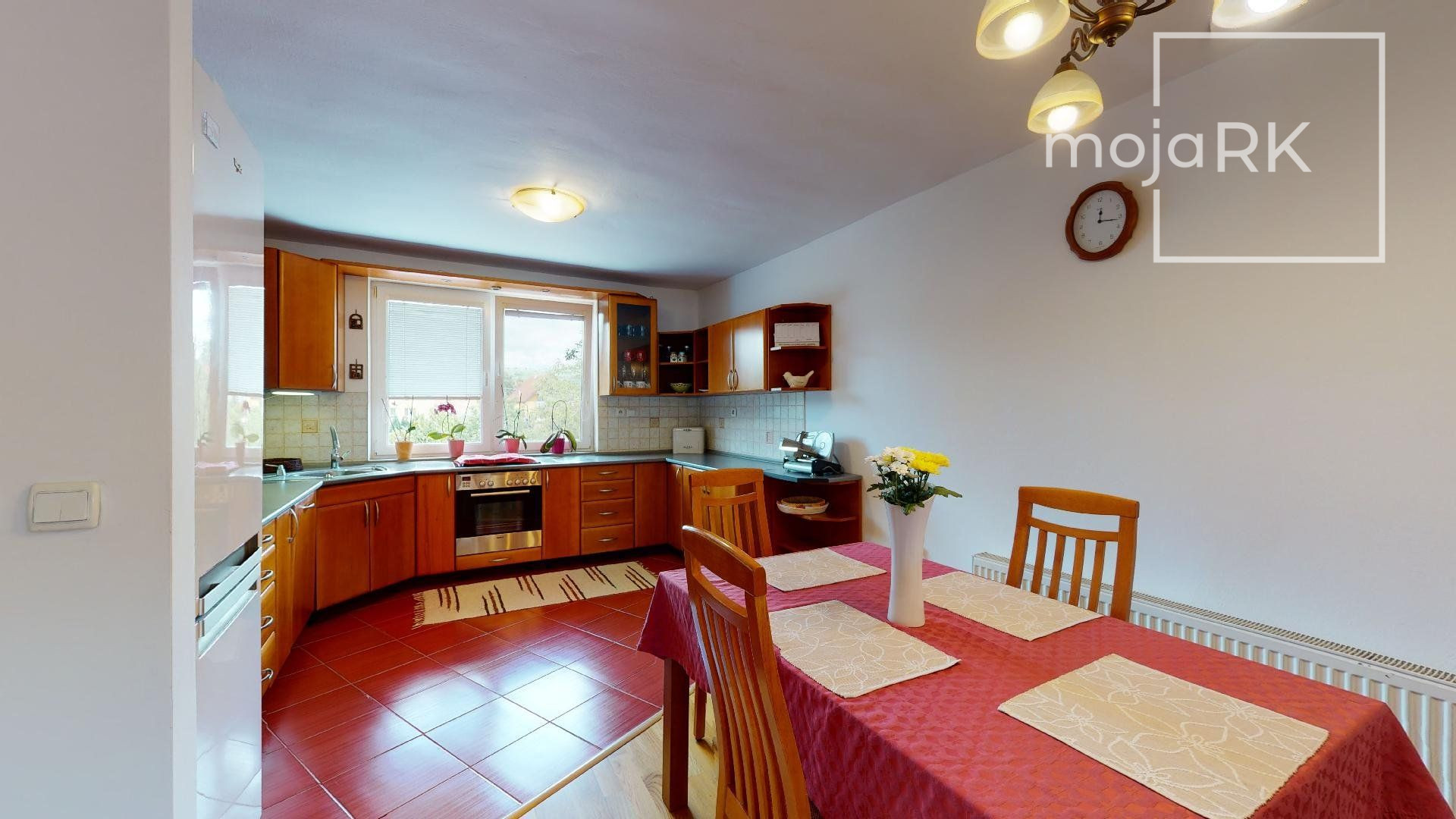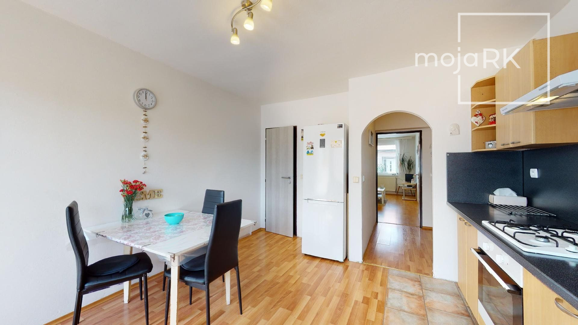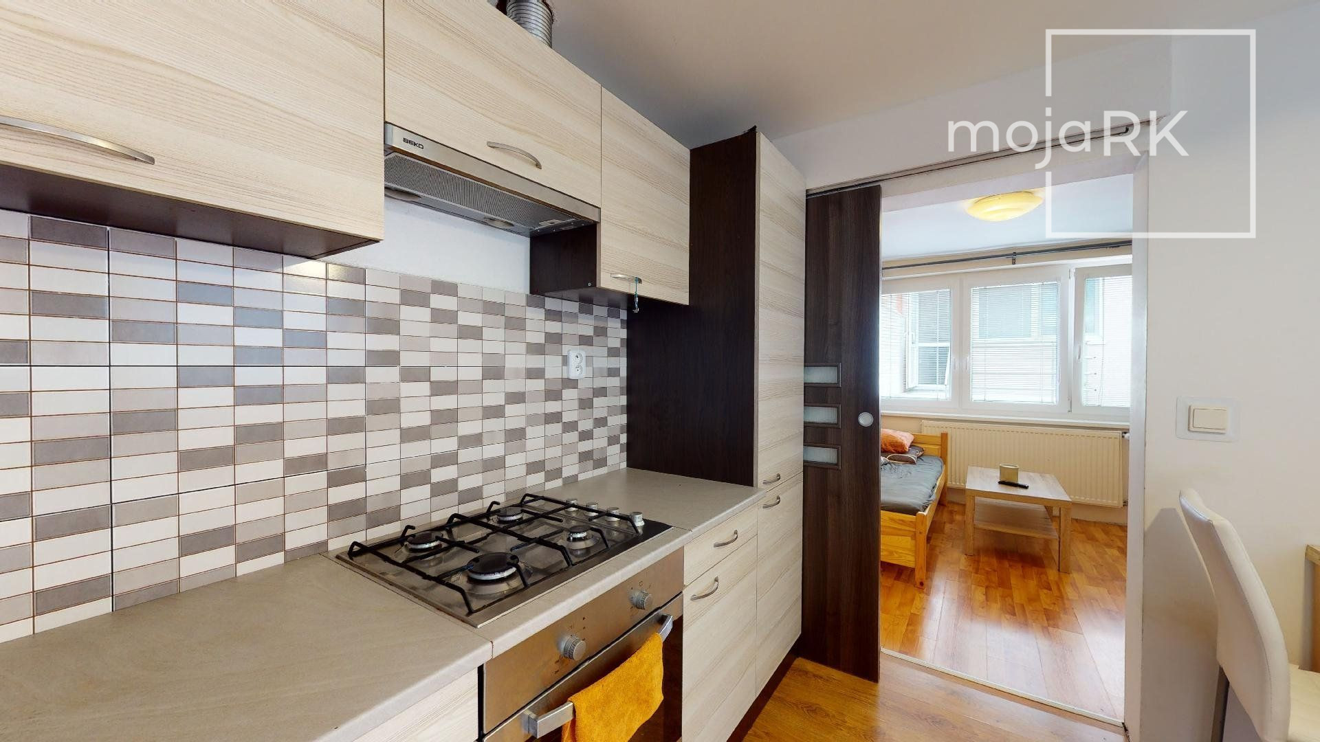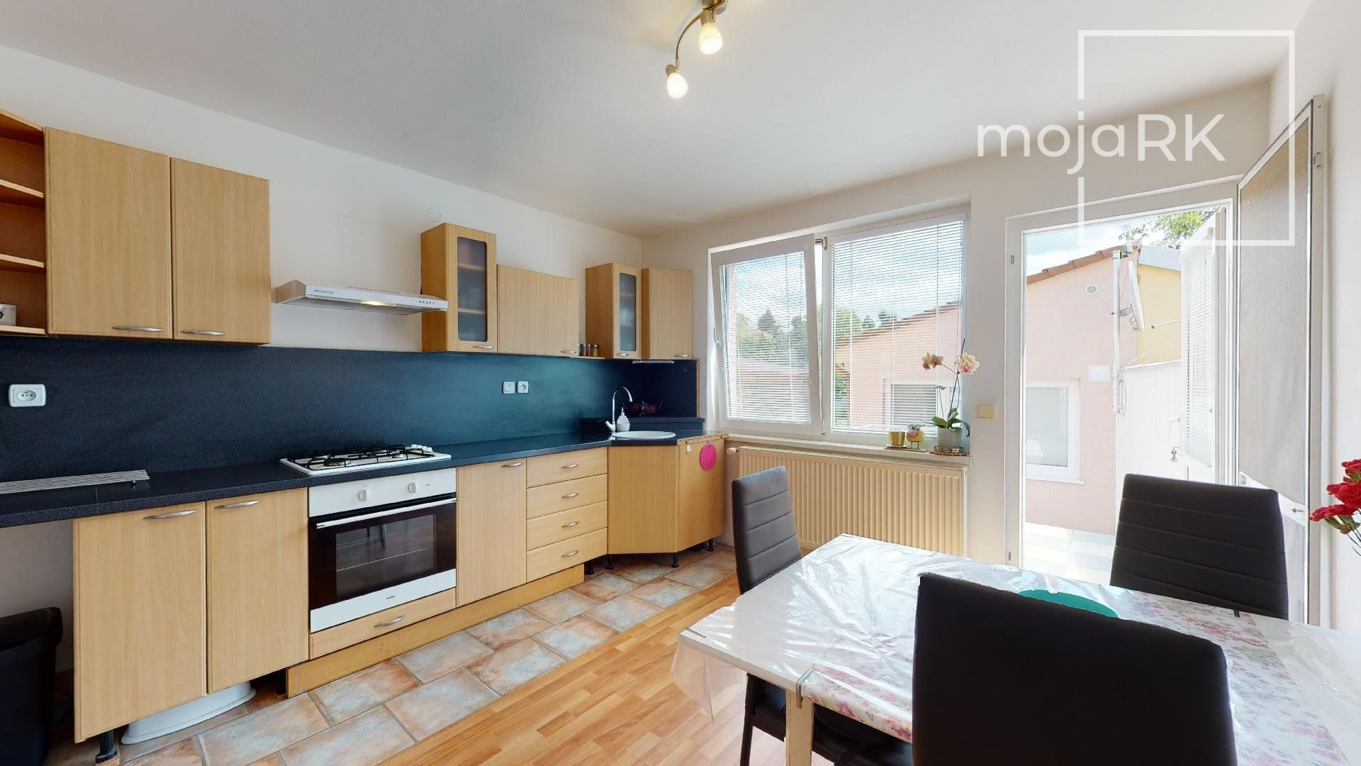 - kuchynské linky sú vybavené vstavanými spotrebičmi: plynová varná doska, elektrická rúra, digestor, umývačka riadu, samostatne stojaca chladnička s mraziacim boxom