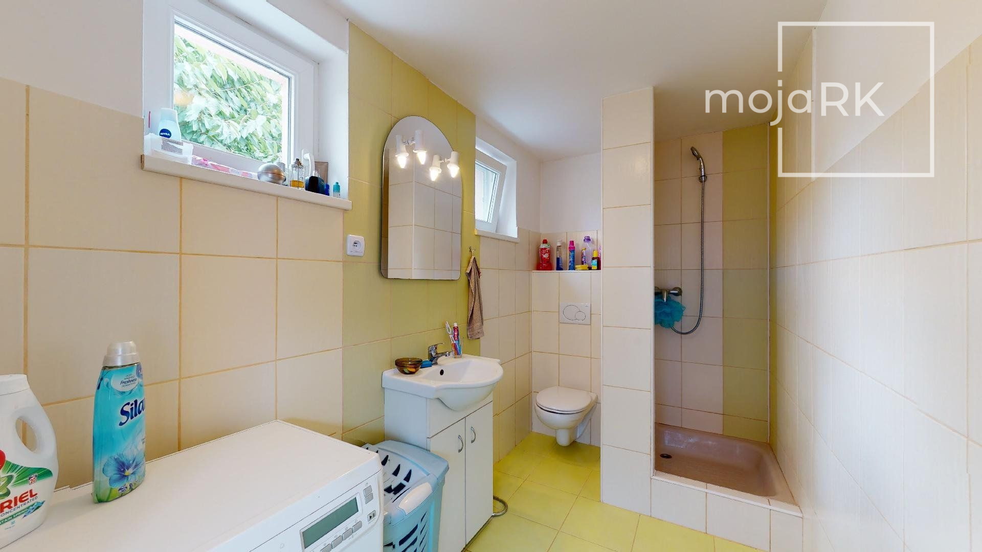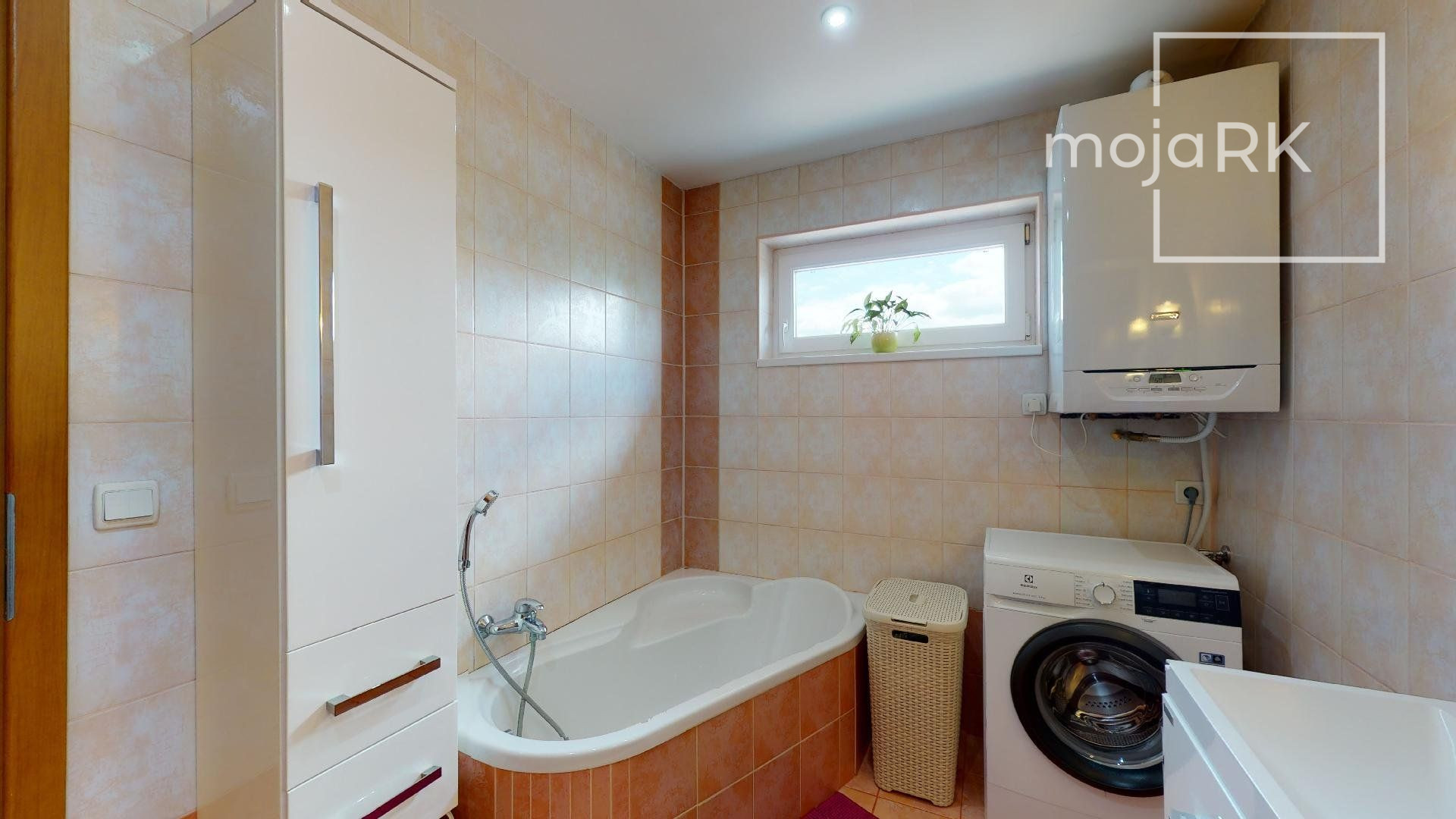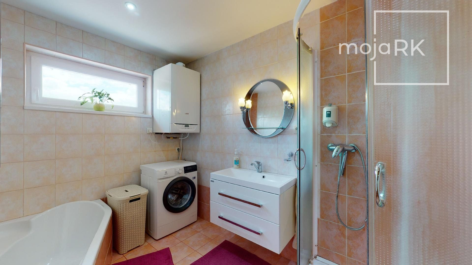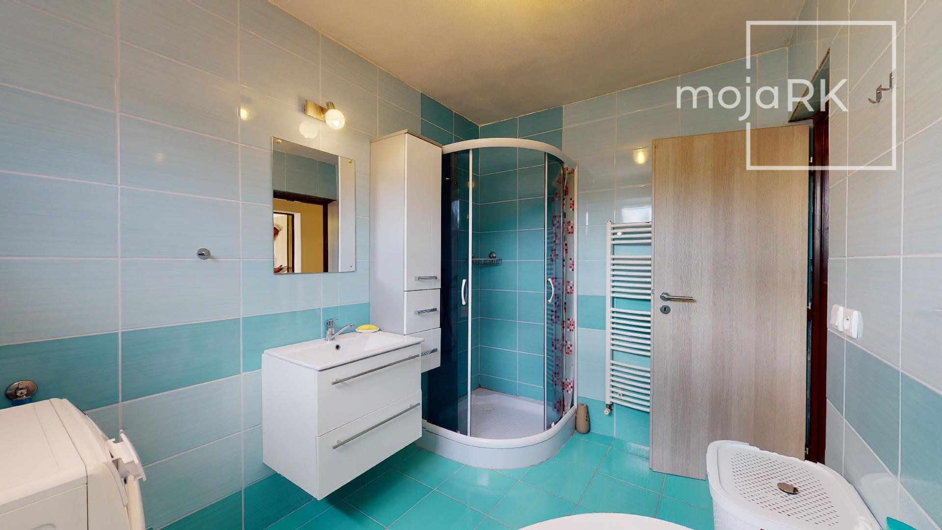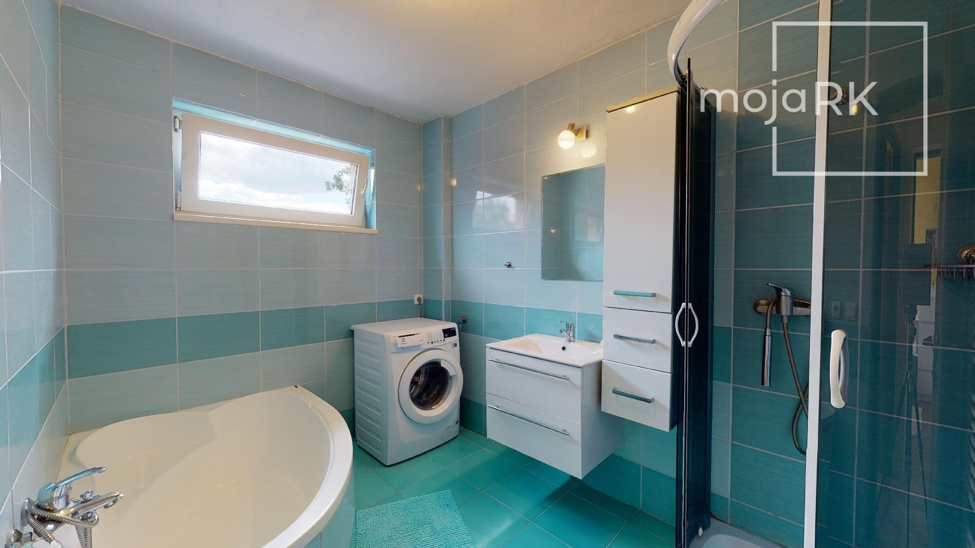 - kúpeľňa s umývadlom, rohovou vaňou a sprchovacím kútom