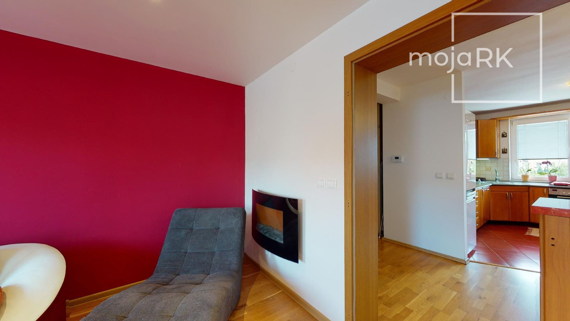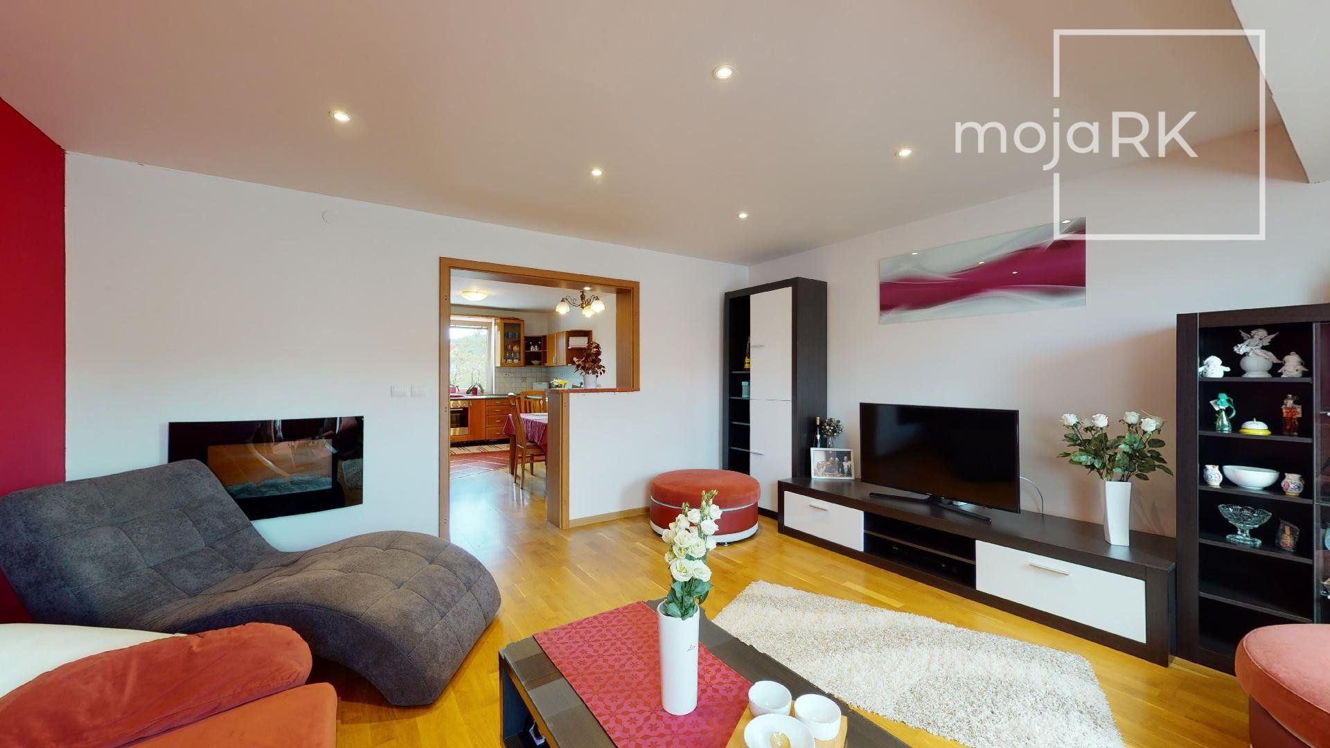 - obývacia miestnosť s elektrickým krbom