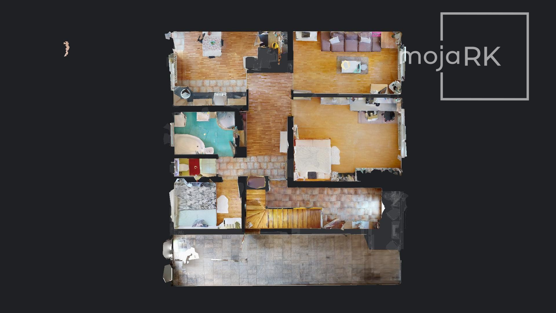 - 2.NP: drevené parkety, keramická dlažba