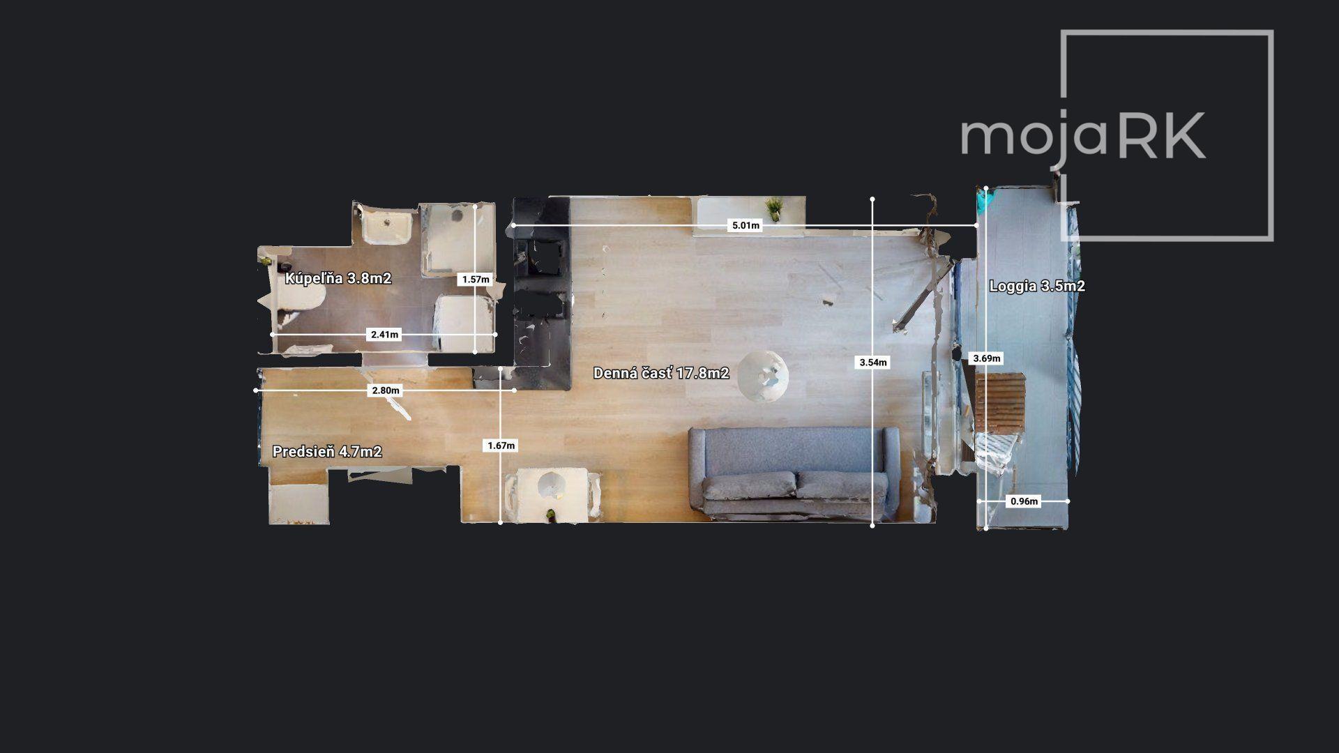 Byt s úžitkovou plochou 24,66 m2 + balkón 3,59 m2 je kompletne novo zariadený a vybavený 08/2021.