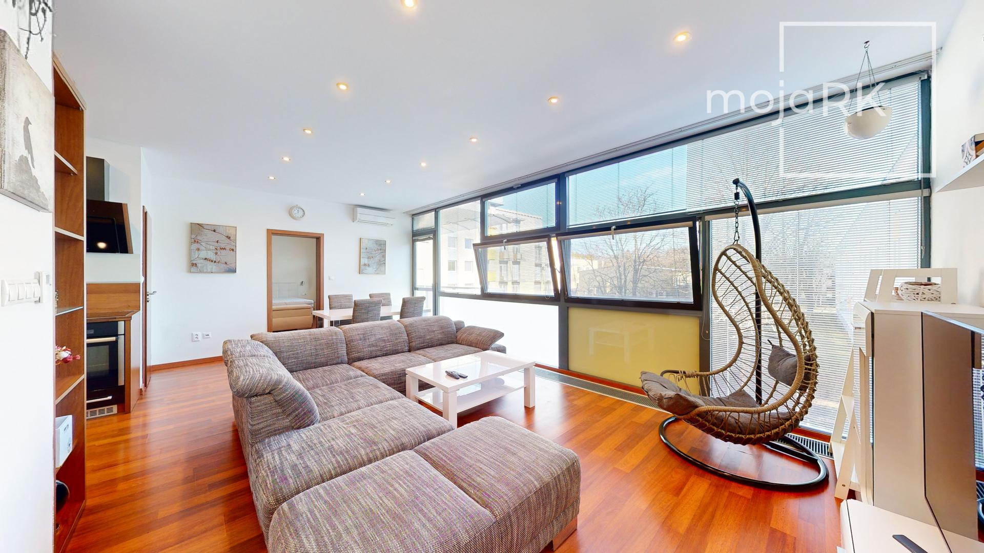 Byt je kompletne zariadený a pripravený na okamžité bývanie. V celom byte sú plávajúce podlahy, hliníkové okná s interiérovými žalúziami a bezpečnostné vchodové dvere. Obývacia izba je vybavená klimatizáciou, sedaciou súpravou s š'tylovým hojdacím kreslom a jedálenským stolom.