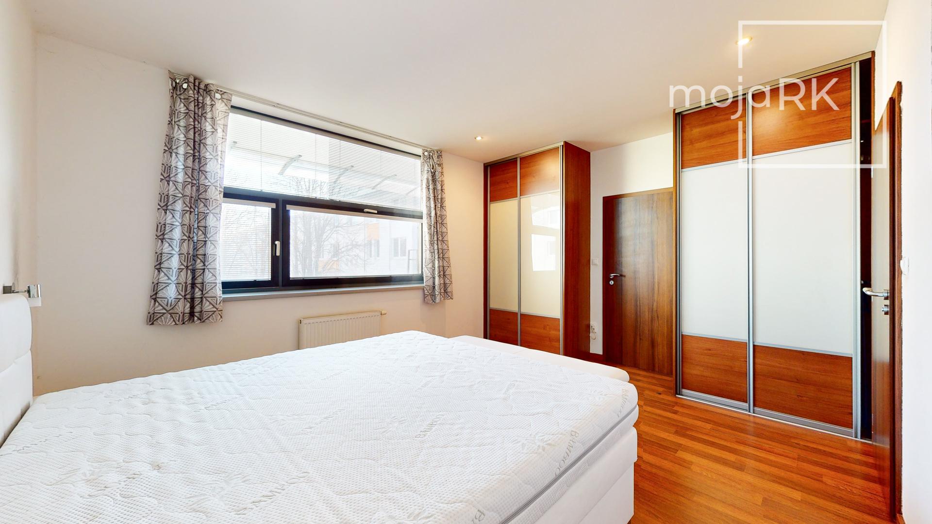 Spálňa je priestranná a útulná, s dostatkom úložného priestoru vďaka vstavaným skriniam. Bonusom je kúpeľňa priamo v spálni, ktorá je vybavená vaňou aj sprchovým kútom, takže si môžete vybrať medzi rýchlou sprchou alebo oddychovým kúpeľom. Pre maximálny komfort je v byte aj samostatná toaleta s umývadlom, ideálna pre návštevy (so vstupom z obývačky).