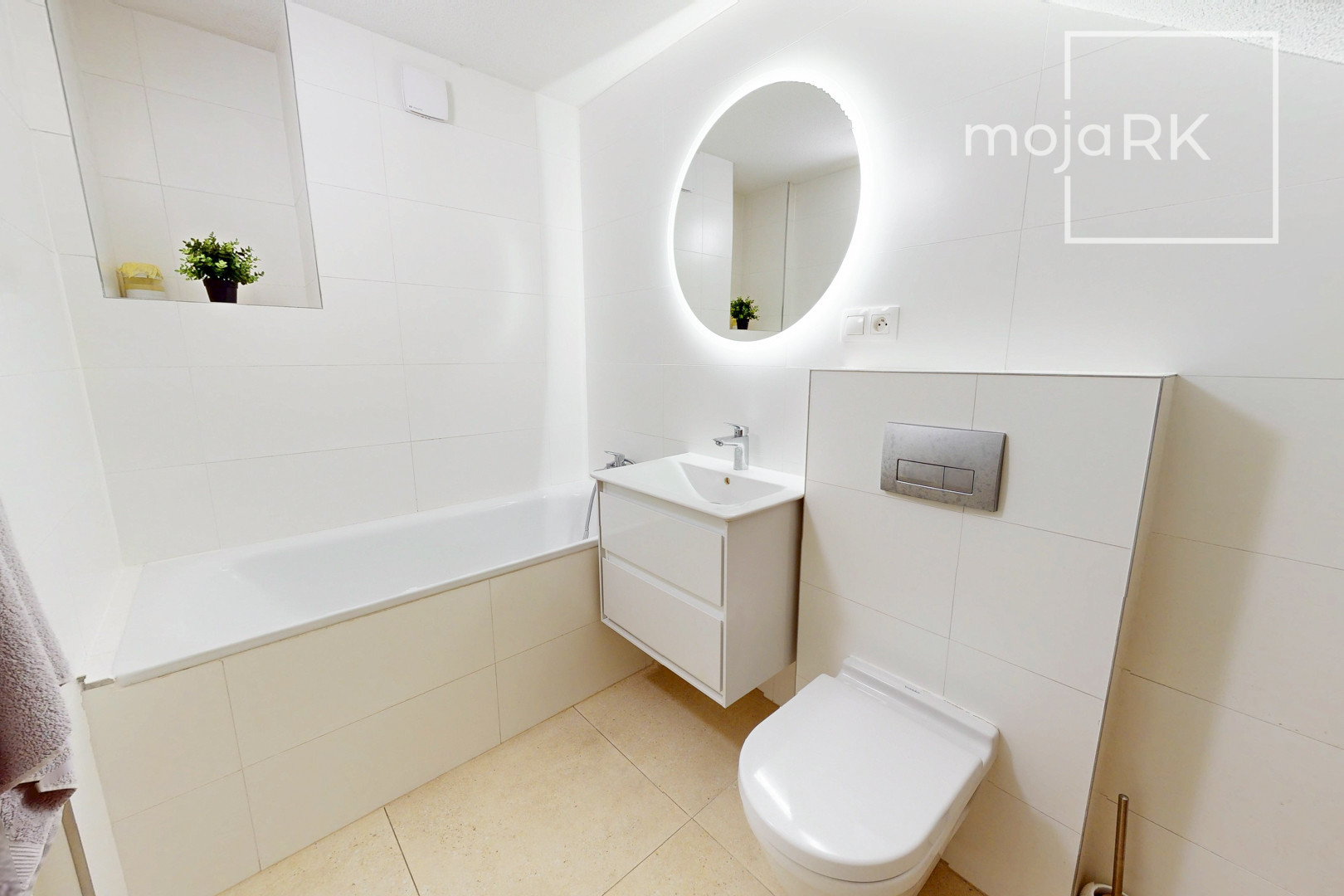 Kúpeľňa s vaňou a toaletou bola rekonštruovaná s dôrazom na praktickosť.