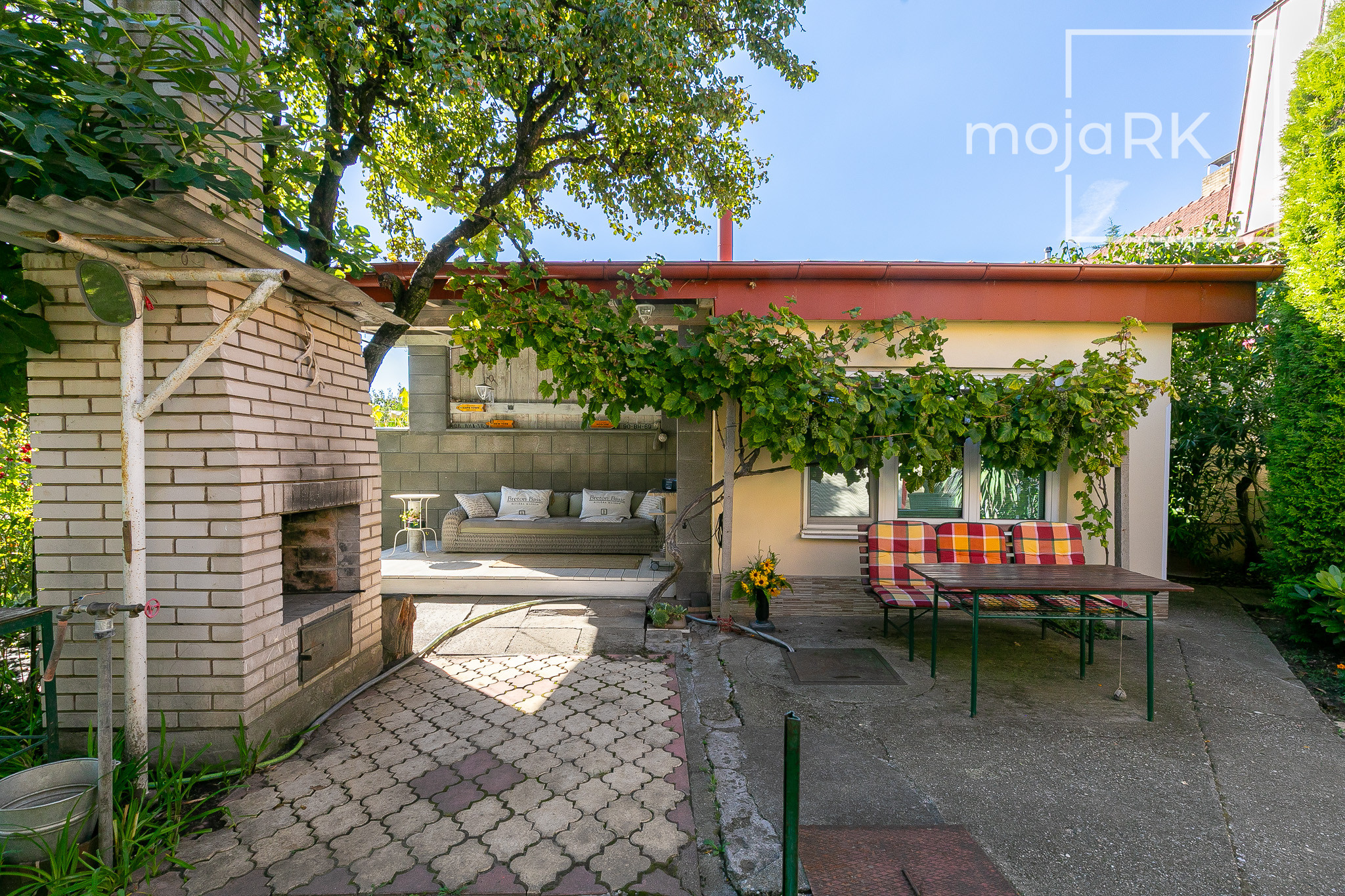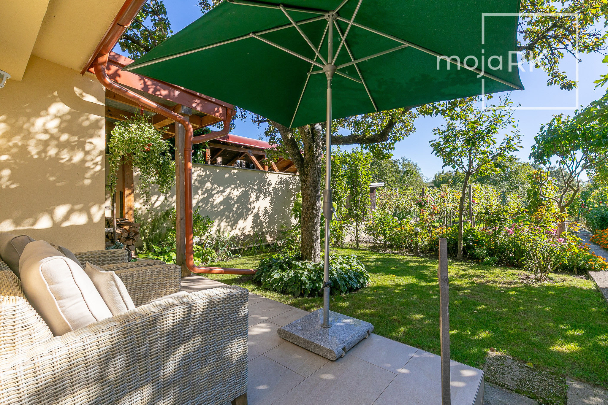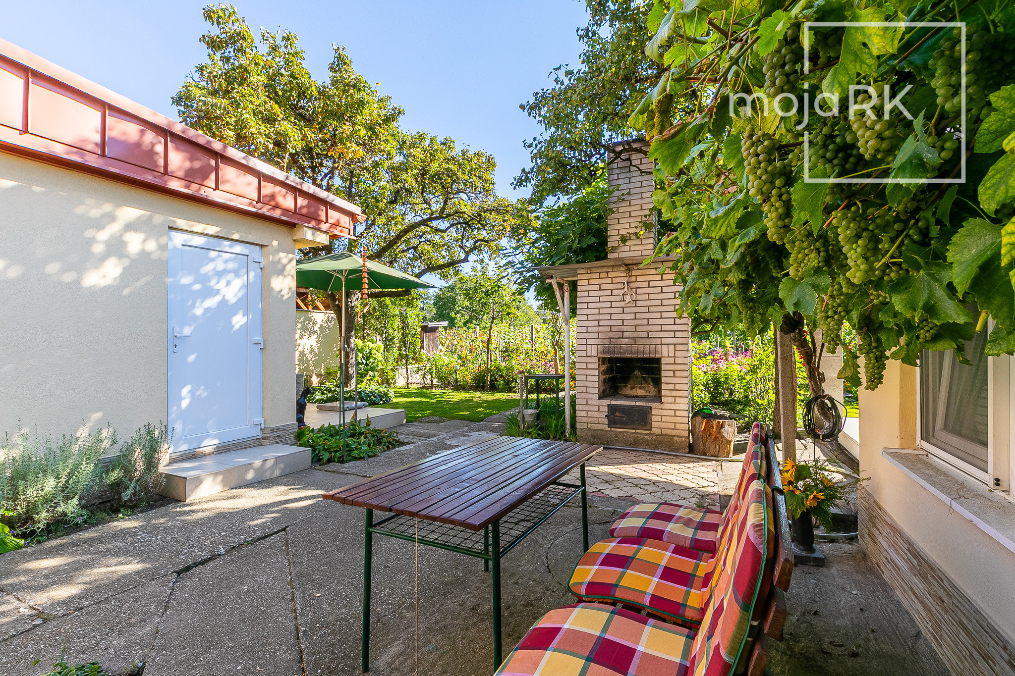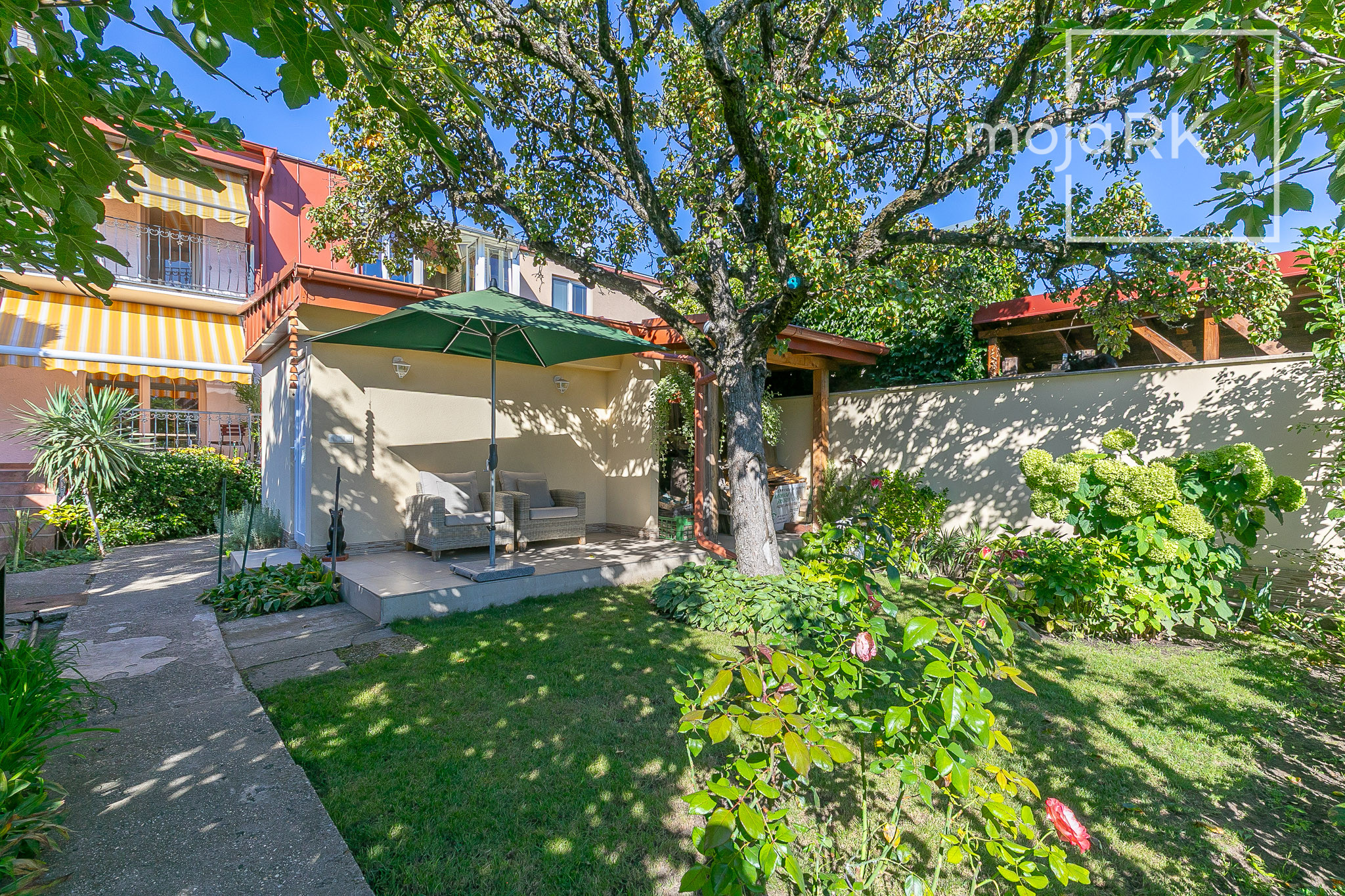 Súčasťou tejto nehnuteľnosti je KRÁSNA UDRŽIAVANÁ ZÁHRADA s vinohradom, okrasnými a ovocnými drevinami, množstvom kvetov (ruže, cibuloviny, trvalky) aj s priestorom pre úžitkovú záhradu. Dominantou záhrady je parkový strom liriodendrón, veľká figa a dvestoročný olivovník.