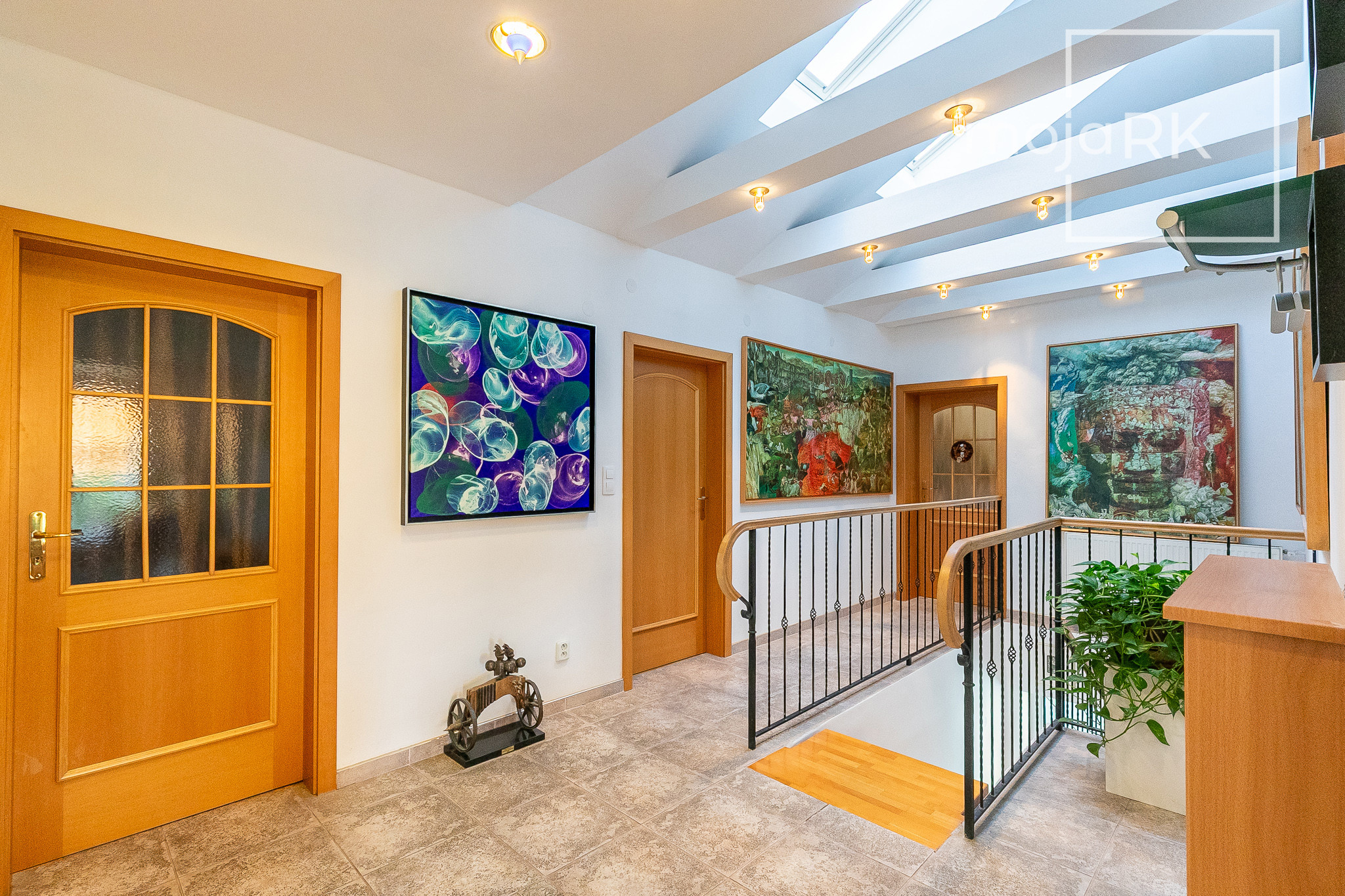 Dvojpodlažný, čiastočne podpivničený SAMOSTATNE STOJACI 6 izbový rodinný dom, pôvodne 8 izbový s úžitkovou plochou 342 m2 sa nachádza na ROVINATOM POZEMKU s rozlohou 837 m2.
