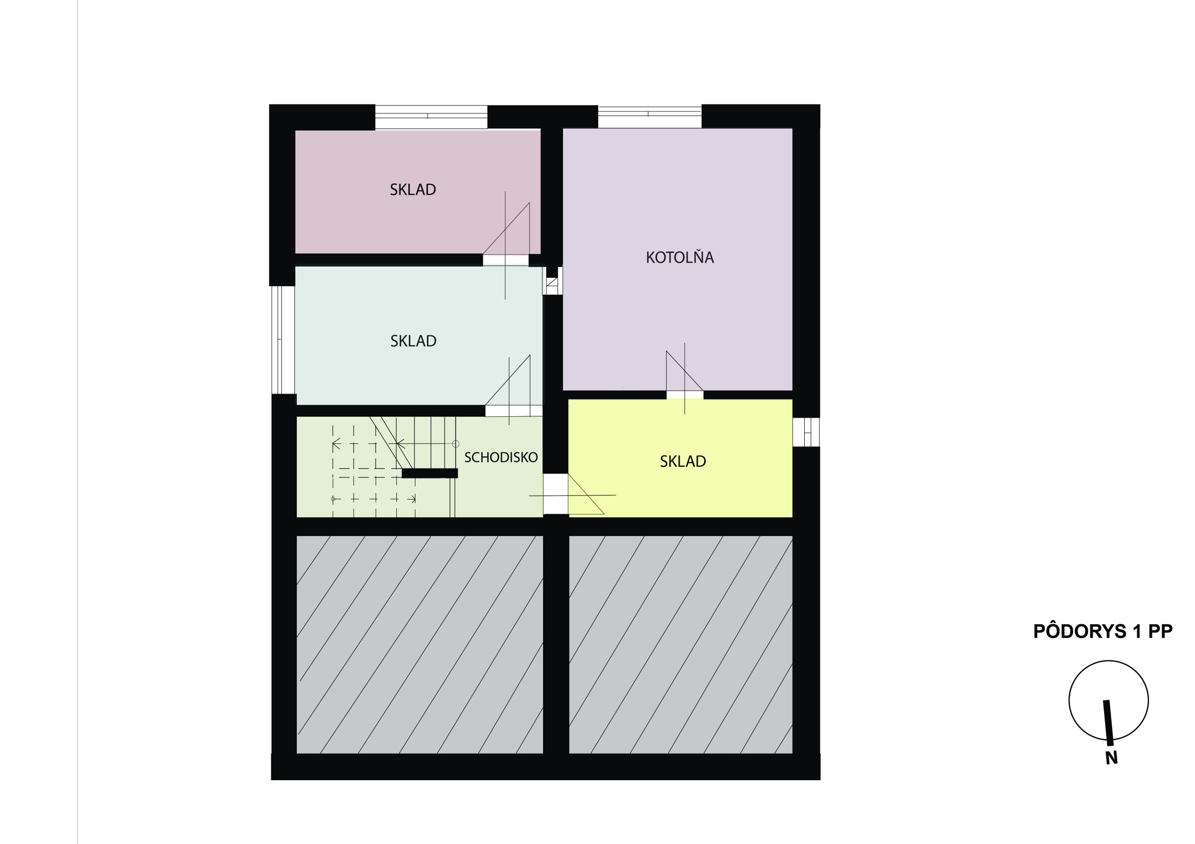 - 1.NP/severne orientované okná: plastové s izolačným trojsklom a exteriérovými elektrickými roletami