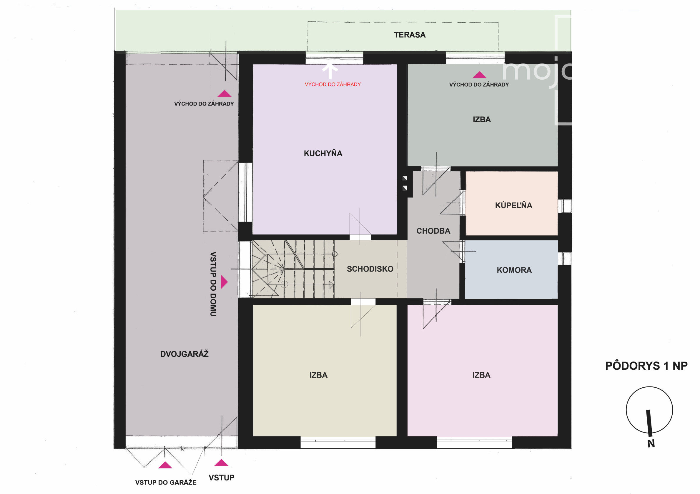 - kuchyňa s jedálenskou časťou, so vstupom na terasu a na záhradu/Južná strana